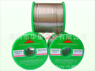 无铅锡线采用成分高达99.99%的云南纯锡锭为原材料,配与独特的多组元环保复合型助焊剂和先进的生产工艺生产出完全符合欧盟ROHS标准的环保无铅锡线,并花巨资引进德国直读光谱仪为产品实行全程品质内控,并经第三方权威检测机构(SGS)检测认证,可为客户提供SGS检测报告。我们的无铅锡线适用于各种钎焊要求,畅销国内外。