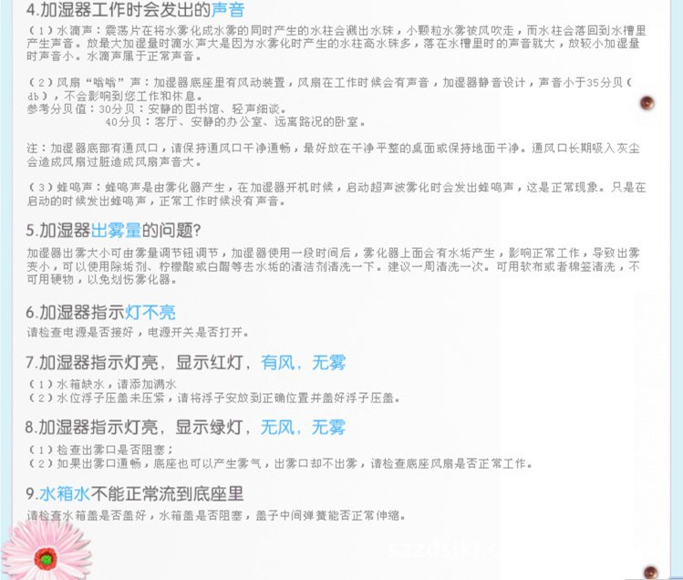不要将增湿器放在风口,并且尽量远离家具及电器产品。