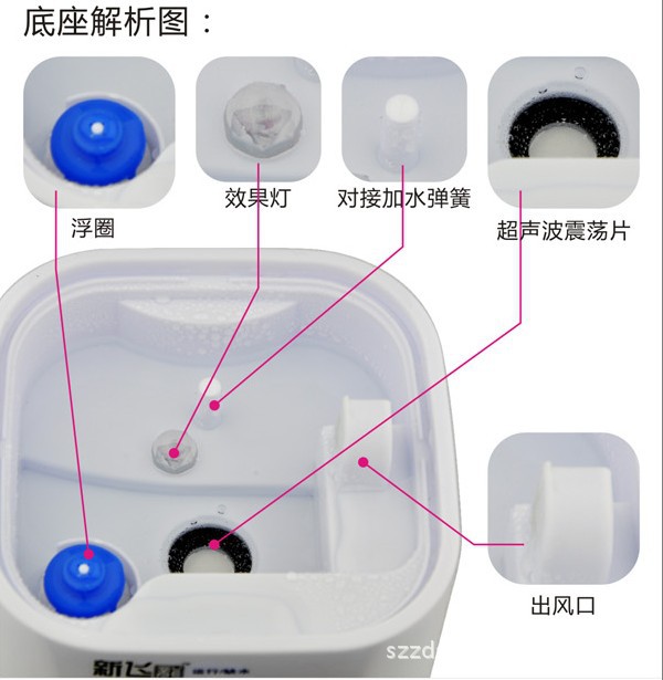 在水中添加植物精油或药液等,随水雾散发,满室生香,使身体更易吸收,有治病养神,保健理疗效果,尤其对于皮肤过敏、失眠、感冒、咳嗽、哮喘具有极佳的辅助效果,是传统香薰产品的最佳换代选择。