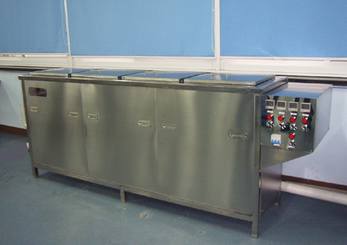 美源超波清洗机主要由超声波清洗槽和超声波发生器两部分构成。超声波清洗槽用坚固弹性好、耐腐蚀的优质不锈钢制成,底部安装有超声波换能器振子;超声波发生器产生高频高压,通过电缆联结线传导给换能器,换能器与振动板一起产生高频共振,从而使清洗槽中的溶剂受超声波作用对污垢进行洗净。