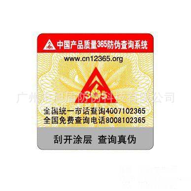 (4) 带数码防伪的激光标贴:消费者能够通过电话查询真伪。