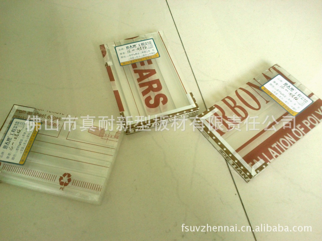 - 抗冲击能力强, PC实心板的冲击强度是同等厚度普通玻璃的250-300倍,是钢化玻璃的50-100倍,是亚克力的25-30倍,广泛用于防爆防盗系统,并有防弹玻璃之美誉
