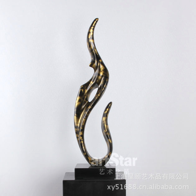 产品特点:现代抽象艺术雕塑摆件饰品选用复合材料金属材料等通过纯手工、漆饰 、电镀等精细仿真效果制作而成。产品长期摆放不变行、不脱色、易打理,将其摆放在不同的空间予以独特陈设,使人感到温馨、舒适而又不失现代时尚潮流,别有一番情韵。
