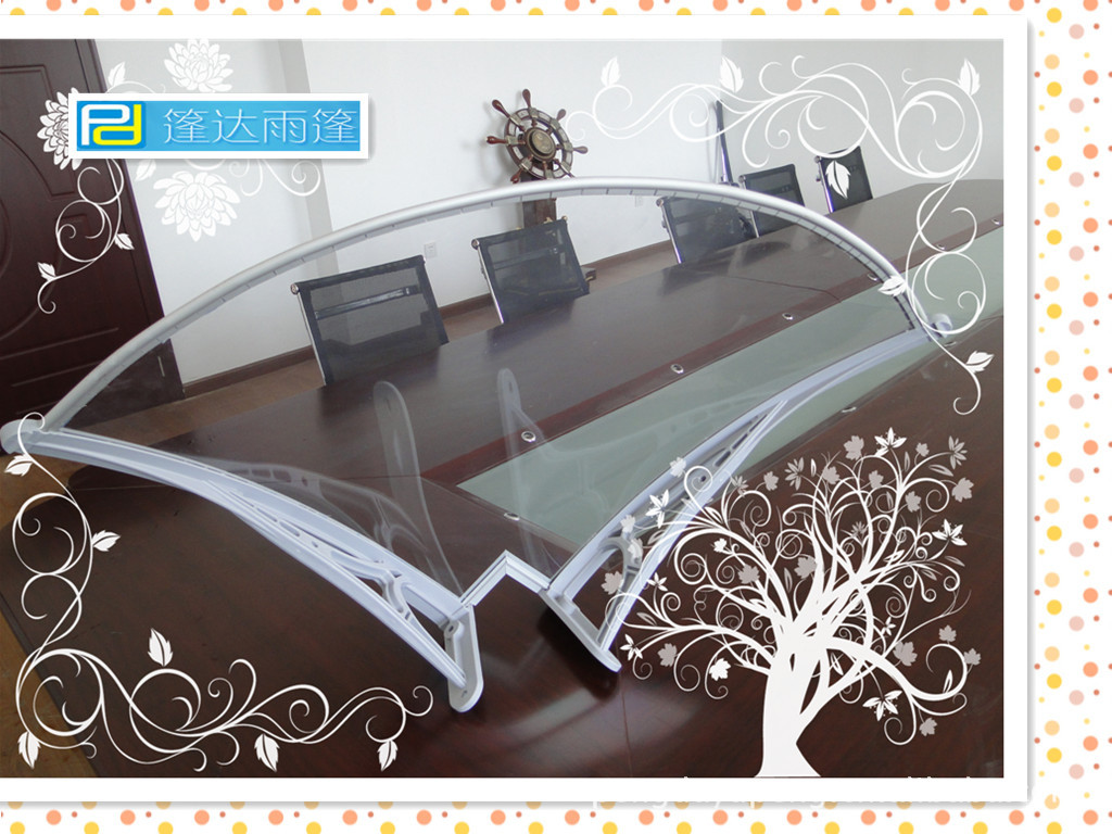 (1)篷达雨篷的设计来自于汽车隔音、隔热、透光的设计理念。由专业的设计师全新设计,并配以先进的耐候产品生产技术。以高强度的工程塑料为框架主体材料,采用两点应力膨胀的坚固安装方式。
