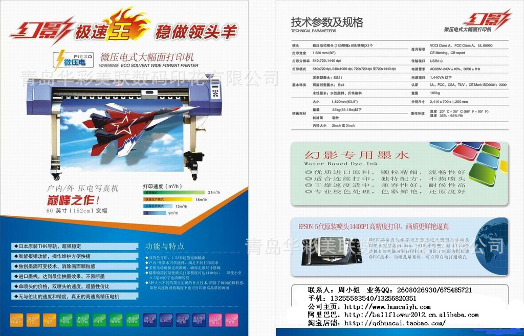 墨水种类 | 溶剂型墨水:ss21 弱溶剂型墨水:Es3 水性墨水:水性颜料,升华染料 |