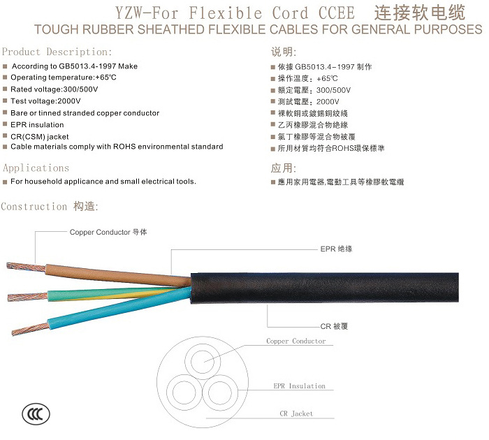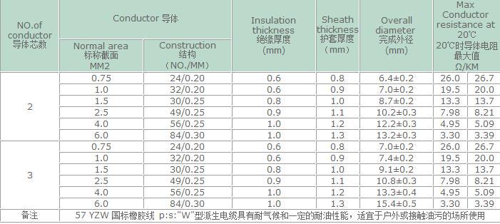 重型橡胶线YCW 245 IEC 66( YCW) 橡胶线 中国国标CCC认证