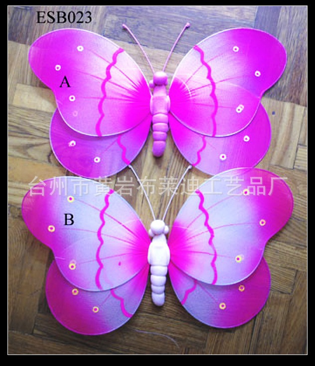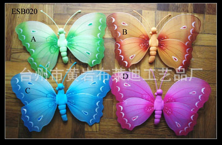 我们生产的产品种类繁多,主要有丝网蝴蝶,丝网背翅膀,丝网花,无纺布袋,无纺布装饰品,节日专用饰品,挂件,木制饰品等,并不断开发新产品;在生产过程中我们更是时时的警戒自己要做好产品生产的每一个细节,力求做到精益求精;产品主要销往大陆 港澳台地区 北美 西欧 东南亚 中东 等国家和地区。 欢迎各界朋友莅临指导、参观和业务洽谈。我们珍惜每一次与你的相遇,因为这是缘份,我们珍惜每一次与你的合作,因为这更是缘份,我们更期待与你的再一次相遇、再一次合作,但我们知道“再一次”的“缘份”来自于我们做的“更好”! |