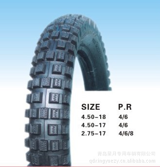 本公司生产的摩托车内外胎型号:225/250-17,250/275-18,250/275-17,250/275-14,300-8,300-10,300-17,300-18,325/350-18,350-10,350-18,400-8,400-12,450-12,500-12,90/90-18,110/90-16,130/90-15。