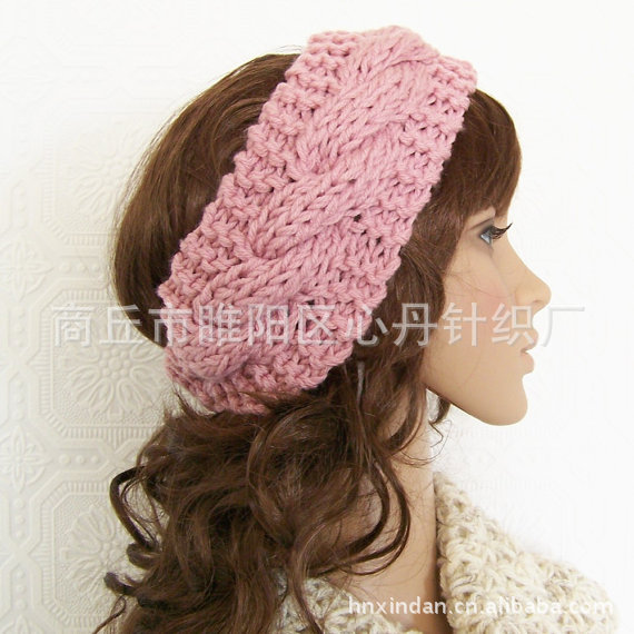 这款头带是手工针织而成,粗棒棉毛线,麻花图案,使这款头带时尚甜美,长度可以调节,多种颜色可选,可加水洗标和吊牌,透明塑料袋独立包装。