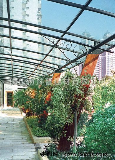 1、 PC板的安装接点如图所示,在安装PC板时,应先把PC板边 缘表面的保护膜掀起10cm左右,以便中性密封胶和PC板的粘结, 达到更好的防水效果。 2、 为防止热胀冷缩,在安装PC板时两板(跨度在2M内)间的接点处应预留至少10MM的伸缩空隙。如跨度大的安装预留伸缩空间按PC板的热彭胀系数而定。 3、 PC板安装好后在一星期内把表面(双面)保护膜撕掉。 4、 安装时如需在PC板上直接打孔,一般孔径必须大于螺栓直径50%。应选用头部大于孔径的螺栓,并加防水垫。 5、 安装时螺栓不可过紧,否则会引发PC板爆裂及防水问题。 6、 PVC垫圈中的增DOP塑剂及某些橡胶垫圈中的化学物质,与PC板接触后会破坏PC板,因此绝对不可使用,建议使用垫圈的材质为EPDM rubber (三元乙丙橡胶)、Siliconer rubber (硅橡胶)及Neoprene rubber (氯丁橡胶)。如果没有合适的垫圈,则宁愿不用,否则会破坏PC板,使之破裂。 7、 需密封胶安装,可选用中性的Silicone(硅)中性系列密封胶 (alcohol type, Toshiba) 或双面防水胶带。 8、 双面防水胶带除用于防水外,也可用于板材与框架间的衬垫材料。大部分双面胶带均对PC板有破坏性。因此需选择不会破坏PC板的胶带,如日本的丁基防水胶带可用。 9、 PC板如需弯曲时,其施工弯曲半径需大于应变弯曲率半径,应变弯曲率半径如下: ① PC阳光板 (空心板)弯曲半径(R)需要超过板厚度的170倍以上。 10、 PC板双面有保护膜 ,抗紫外线处理面保护膜有印刷标志,安装时此面朝阳。 |