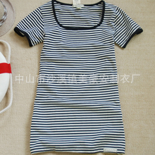 供应条纹修身圆领短袖T恤 承接外贸订单
