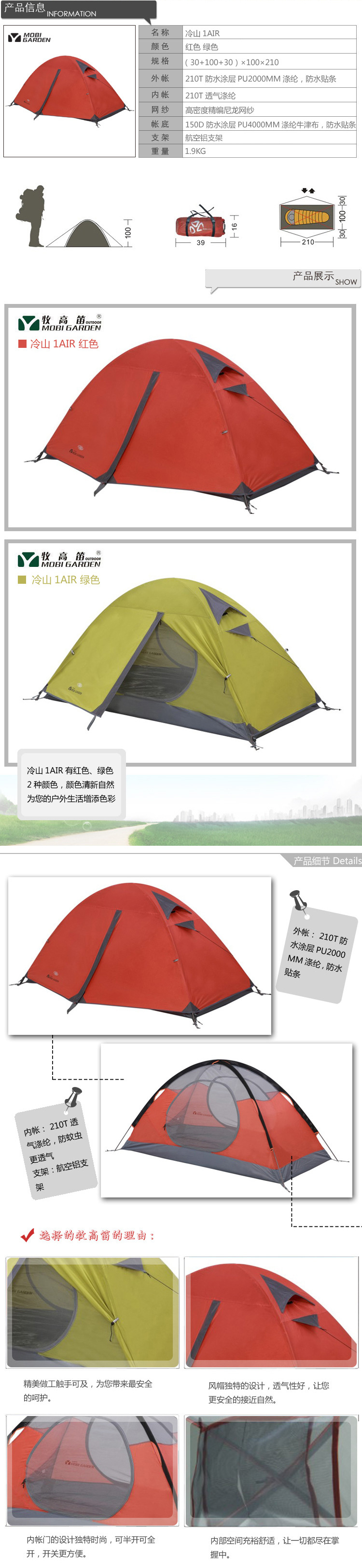 引入轻型帐底概念,最大限度的发挥了每个配件的作用,整个帐篷尊崇重量达到最小化,易于携带,减轻徒步旅游的载重。