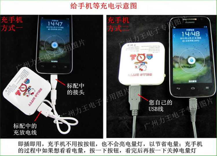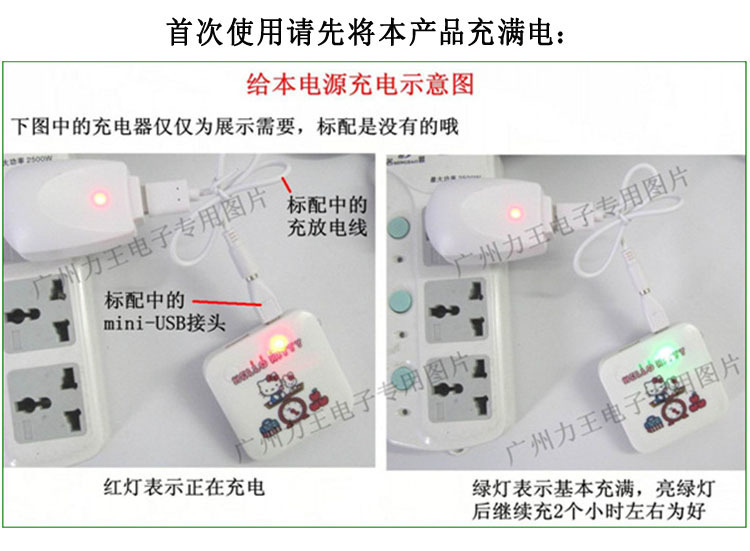 标准配置:一个移动电源主机,一条线,一个迷你USB接头,一个MICRO-USB接头,说明书,包装盒