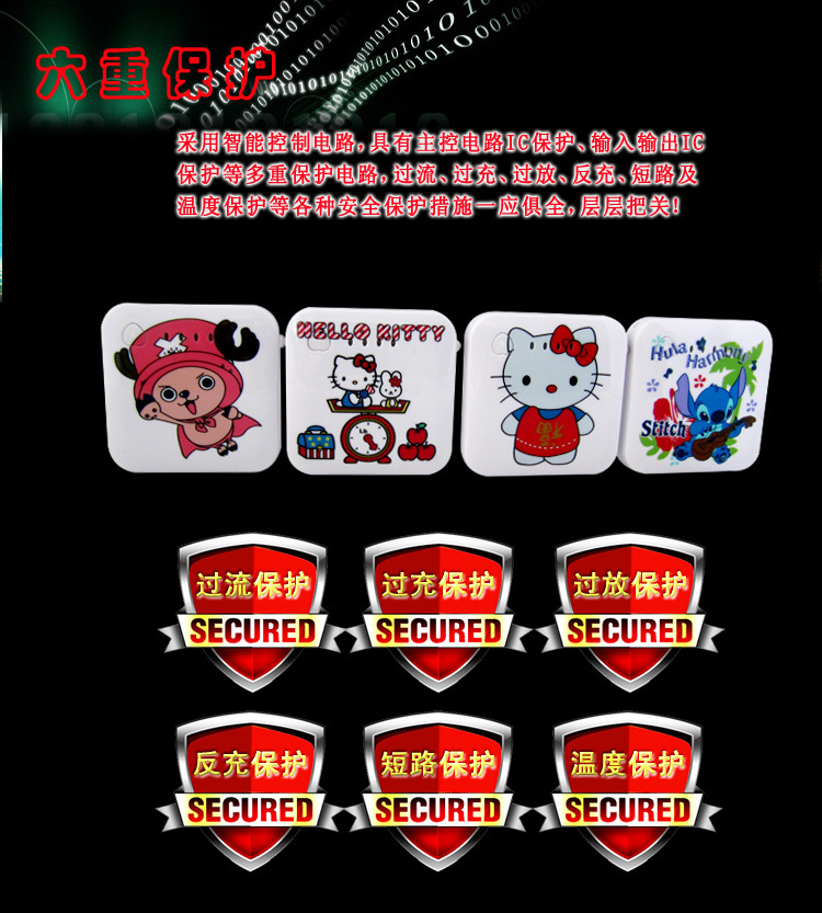 可为各种手机、游戏机、音乐播放器、蓝牙等4-6V充电的数码设备充电充电