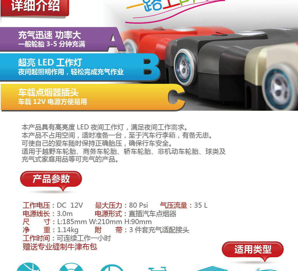 充气泵1616 车载充气泵 打气泵小型充气泵 轿车充气泵 轮胎充气泵