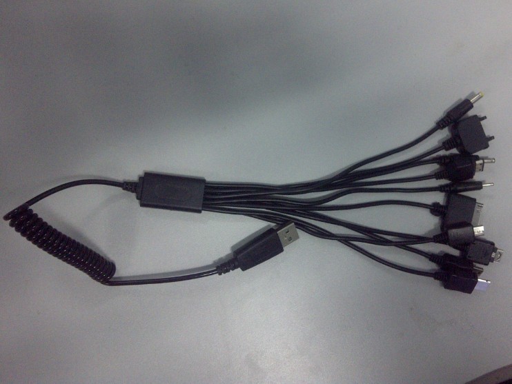 名称:10合1 USB充电线颜色:黑说明:配10条现在手机的主流充电接口;配合车充头(或充电头,或电脑USB),即可实现充电