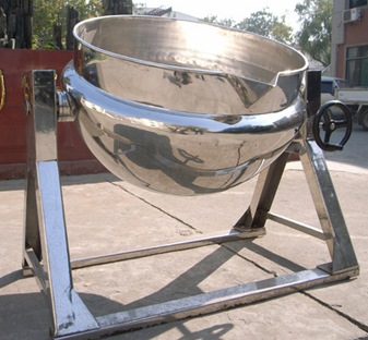 我公司生产的可倾式夹层锅为冲压、旋压一次成型无焊接,锅体可作180以内的转动,本设备为敞口式浓缩,主要用于制药、食品、化工、轻工等行业对料液的煎煮和浓缩,该设备与物料接触部分为不锈钢SUS304,具有较好的耐腐蚀性能,经久耐用,符合GMP要求,同时亦可根据用户要求,可增加搅拌装置。