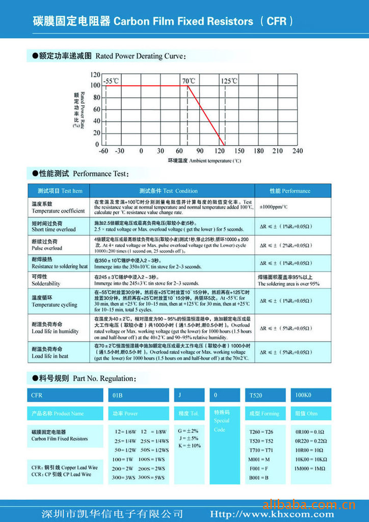 凯华信电子专业生产全系列CFR 碳膜电阻