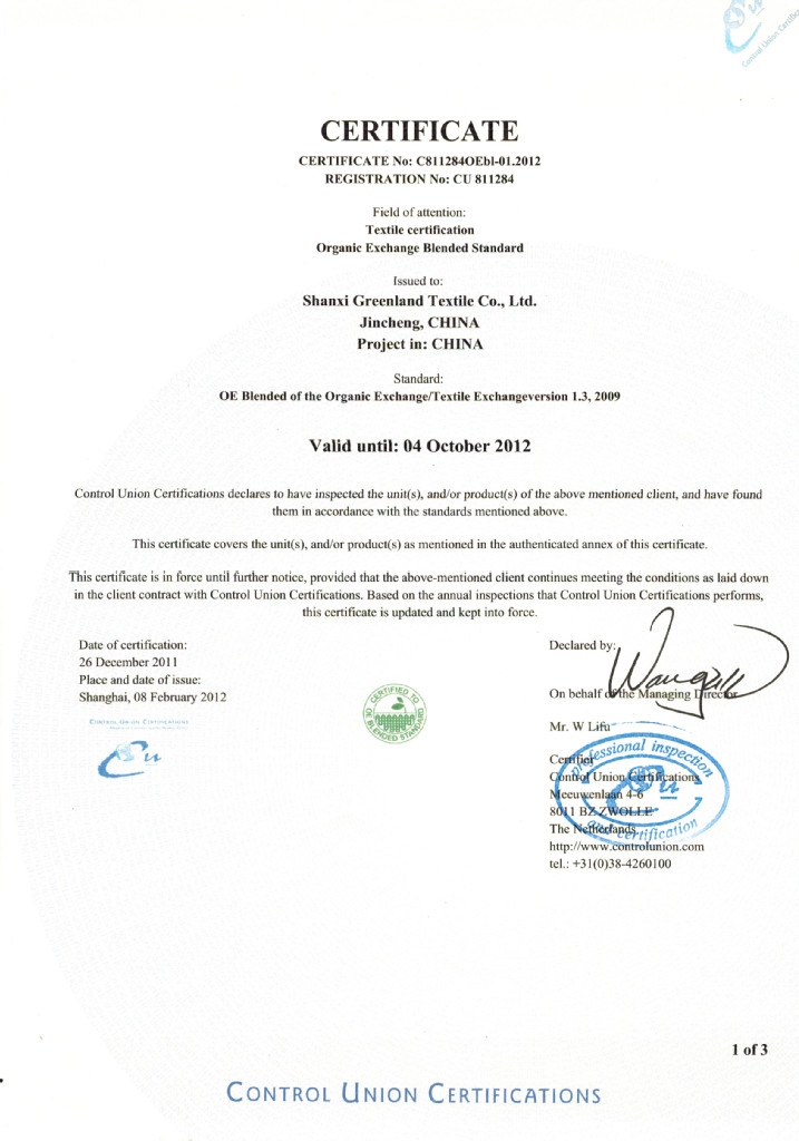我公司是以生产大麻,有机棉,有机亚麻等有机类产品为主导产品的高新技术企业,是中国大麻纺织产品生产的龙头企业和产品开发基地。我公司从2002年开始生产有机棉产品,并已通过荷兰Control Union有机认证和瑞士IMO公司有机产品认证,原料从土耳其进口,产品主要出口美国、日本、加拿大、新西兰、澳大利亚、丹麦、英国、韩国及香港等国家和地区。