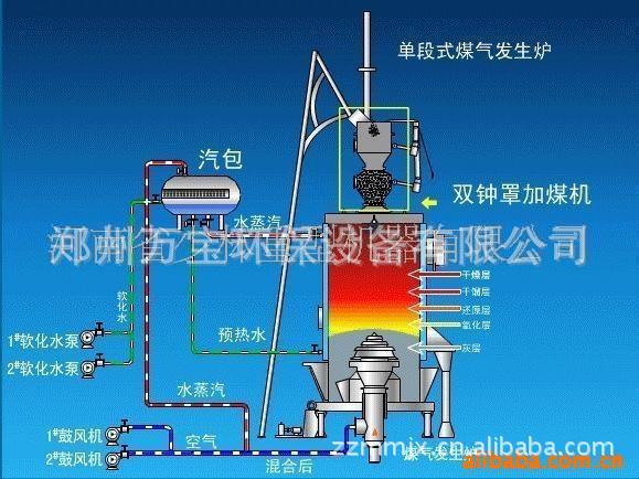 QM型煤气发生炉是为机械、冶金、建材、轻工、化工、耐材等行业热加工车间提供混合发生炉煤气的设备。煤气发生炉配备单斗提升上煤机,采用双密封钟罩加煤箱自动加煤,利用湿式灰盘自动出渣。炉篦传动机械全部设计在炉体外,运行可靠,便于安装维修。发生炉水套和汽包系低承压设备,均经过设计强度计算,对制造要求严格,产品出厂前进行周密检验,确保质量,发生炉生产的蒸汽供给炉底鼓风和炉顶探火孔汽封使用,在生产中不需外来补充蒸汽,以减少热能消耗。
