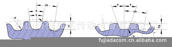 槽型 | 节距 pb | 齿槽深 hg | 齿槽圆弧半径 R | 齿顶圆半角 r1 | 齿槽宽 s | 两倍节顶距 2δ | 齿形角 |