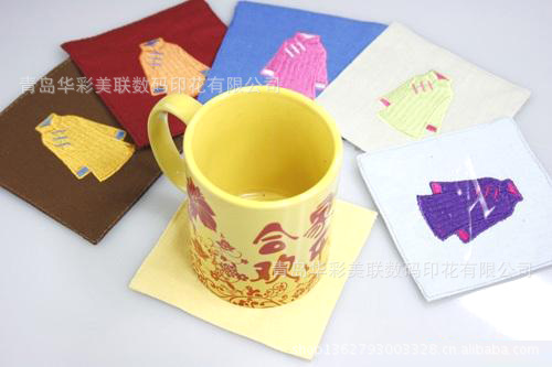 山东青岛杯垫个性热升华转移数码印花加工 杯垫热转印印花价格