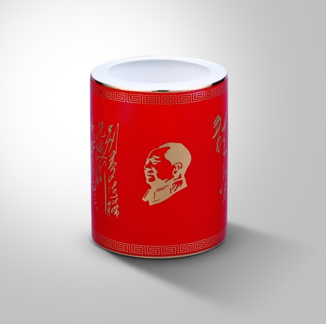 供应中国红瓷国粹旋转笔筒 办公室家居和瓷工艺礼品装饰摆件