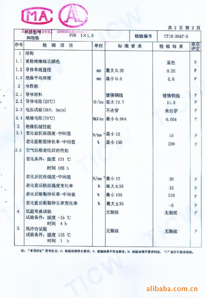 产品特性:具有耐磨、防水、耐寒、耐油耐汽油混合物、不易燃烧,不易老化,环保。 | 标称 截面 mm2 | 规格 | 绝缘 厚度 | 护套 厚度 | 电缆最大外径 mm | 参考重量 kg/km | | FVN | FVNP | FVN | FVNP | 0.2 | 12/0.15 | 0.35 | 0.15 | 1.7 | 2.3 | 4.12 | 8.82 | 0.3 | 16/0.15 | 0.35 | 0.15 | 1.9 | 2.4 | 5.02 | 10.16 | 0.4 | 23/0.15 | 0.35 | 0.15 | 2.1 | 2.6 | 6.58 | 12.37 | 0.5 | 28/0.15 | 0.35 | 0.15 | 2.15 | 2.7 | 7.64 | 13.42 | 0.6 | 19/0.2 | 0.35 | 0.15 | 2.2 | 3.1 | 8.51 | 17.36 | 0.80 | 19/0.23 | 0.35 | 0.15 | 2.3 | 3.2 | 10.63 | 20.76 | 1.0 | 19/0.26 | 0.35 | 0.15 | 2.5 | 3.3 | 13 | 23.06 | 1.2 | 19/0.28 | 0.4 | 0.15 | 2.6 | 3.5 | 15.24 | 26.24 | 1.5 | 19/0.32 | 0.4 | 0.15 | 2.9 | 3.7 | 19.06 | 30.74 | 2.0 | 49/0.23 | 0.4 | 0.15 | 3.4 | 4.3 | 25.57 | 39.23 | 2.5 | 49/0.26 | 0.4 | 0.15 | 3.9 | 4.8 | 31.64 | 46.82 | 3 | 49/0.28 | 0.45 | 0.15 | 4.0 | 4.9 | 36.88 | 52.84 | 4 | 77/0.26 | 0.45 | 0.15 | 4.8 | 5.7 | 50.53 | 69.16 | 5 | 98/0.26 | 0.45 | 0.15 | 5.1 | 5.9 | 51.82 | 71.36 | 6 | 77/0.32 | 0.45 | 0.18 | 5.6 | 6.5 | 74.24 | 96.50 | 8 | 98/0.32 | 0.5 | 0.18 | 6.0 | 6.9 | 90.56 | 113.92 | 10 | 126/0.32 | 0.5 | 0.18 | 7.1 | 7.6 | 118.56 | 146.11 | 13 | 133/0.36 | 0.6 | 0.22 | 7.6 | - | 147.3 | - | 16 | 209/0.32 | 0.6 | 0.22 | 9.0 | - | 194.2 | - | 20 | 247/0.32 | 0.6 | 0.22 | 9.4 | - | 223.8 | - | 25 | 209/0.39 | 0.6 | 0.22 | 10.4 | - | 280.3 | - | 35 | 285/0.39 | 0.6 | 0.22 | 11.6 | - | 369.9 | - | 50 | 380/0.41 | 1.0 | 0.22 | 13.0 | - | 542.5 | - | 70 | 418/0.45 | 1.2 | 0.22 | 15.6 | - | 731.4 | - | 95 | 589/0.45 | 1.2 | 0.22 | 17.9 | - | 993.5 | - | 120 | 779/0.45 | 1.5 | 0.22 | 19.4 | - | 131.4 | - |