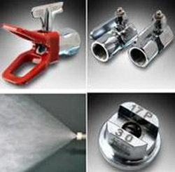 无气喷涂是利用特殊形式的气动、电动或其它动力驱动的液压泵,使涂料形成高压,通过特殊性状和结构的无气喷嘴瞬时喷出,从而使处于液压状态的涂料喷射形成极细扇形雾状,高速喷向被涂表面形成涂层,是您的产品或工程的涂装达到国际标准。产品结构广泛应用钢结构、船舶、建筑装潢、地坪、汽车、挂车、飞机、大型道路立交钢结构路面、家具、货架、皮革、铁道车辆、机械、桥梁、电器、医药、航空、国防、国家重点工程、涉外工程等工业部门涂装领域的两千余家用户。产品遍及全国二十九个省、市、自治区。广泛地应用于上述工业领域的产品或工程涂装,以及各工业部门自动涂装生产流水线。