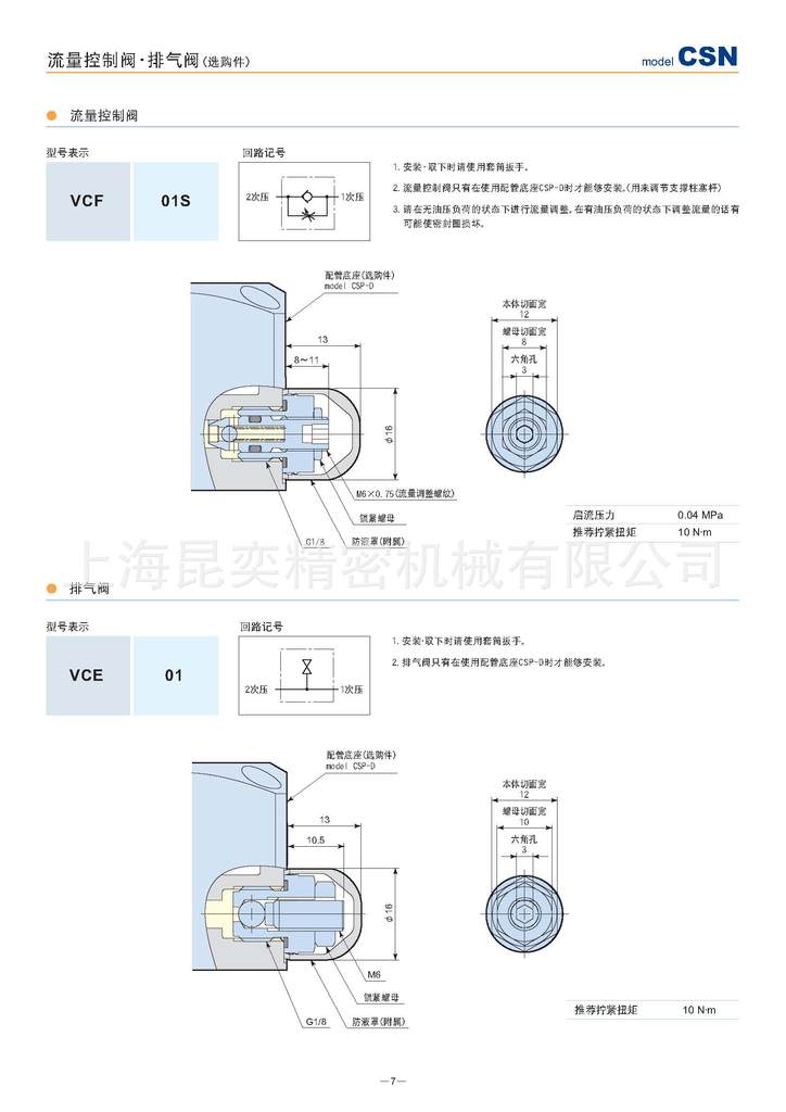 ②流量控制阀:排气阀VCF01,VCF02,VCF03,CTU02,CTU04,CTU06,CTU10,CTU10,CTU16,CTU25,CTT02,CTT04,CTT06,CTT10,CTT16,CTT25