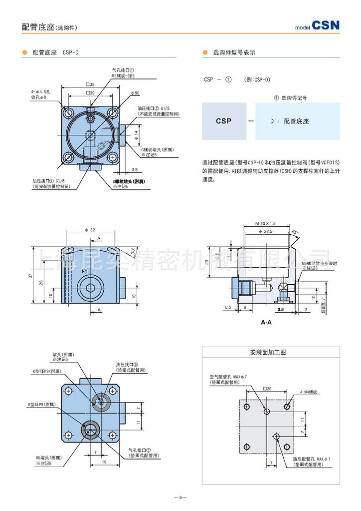 ①兰型号:CSP06M-N,CSP10M-N,CSP16M-N,CSP25M-N②锁紧螺母型号:CSP06M-L, CSP10M-L, CSP16M-L, CSP25M-L③配管盖CSP06M-Q,CSP10M-Q, CSP16M-Q, CSP25M-Q④平行管螺纹阴/阳接头:8FKCO06010, 8FKCO06010※, 8FKHB06010⑤双头螺纹弯管接头:8FKMB06010※,8FKP-C-010