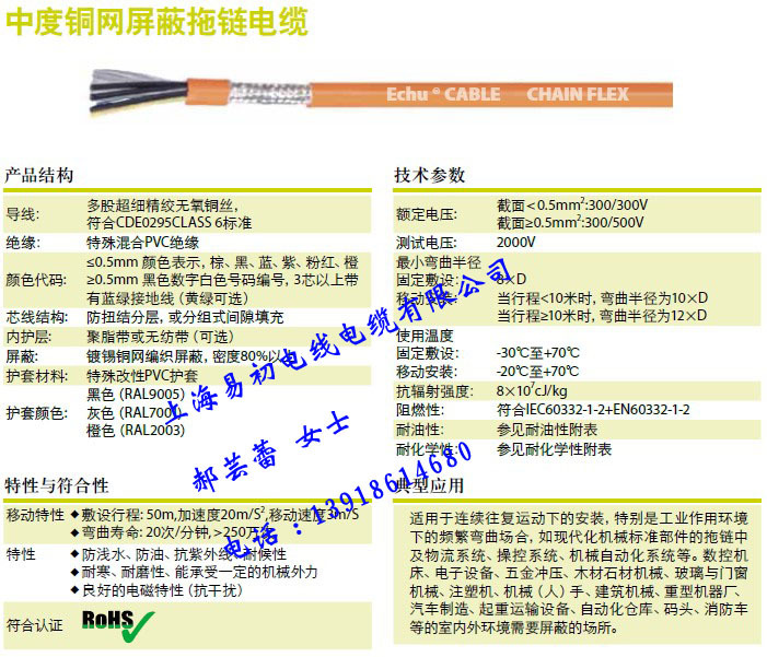 阻燃性: 符合IEC60332-1-2+EN60332-1-2