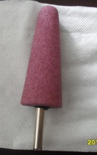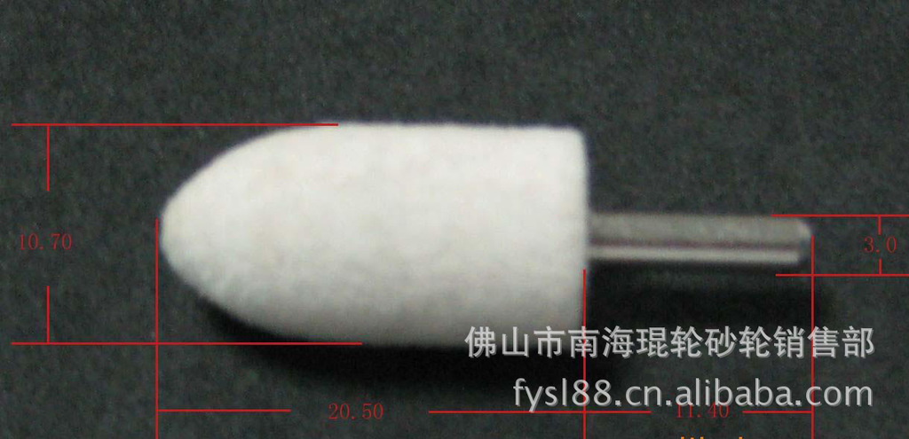 陶瓷磨头:粒度砂(一般为棕刚玉,白钢玉,铬刚玉,碳化硅)由陶瓷结合剂烧结而成,中央辅以金属柄。主要研磨各种金属,用以孔径内壁的研磨,模具的修正。