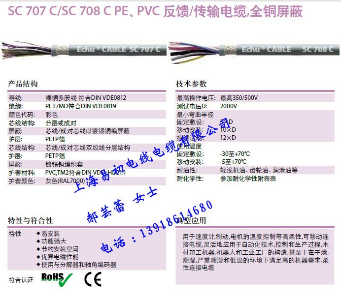护套材料: PVC,TM2符合DIN VDE+HD21.1