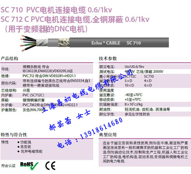 外护套: PVC,TM2符合DIN VDE0282+HD22.1