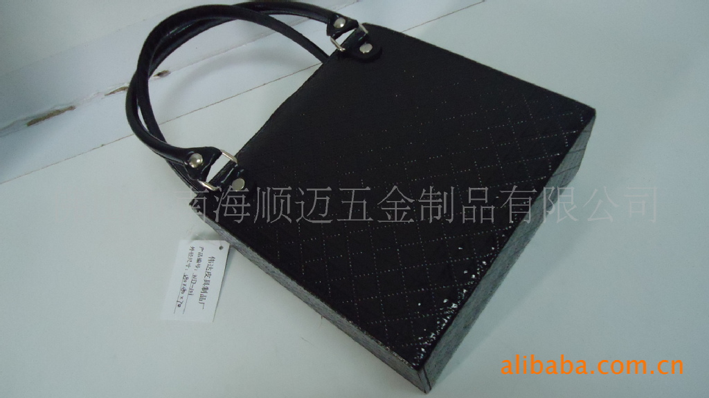 供应优质皮质手提时尚方格钻点纹化妆箱