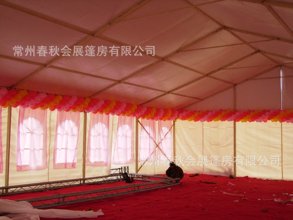 常州市春秋会展篷房有限公司是专业化研制、租赁、销售户外大型展览篷房、旅游休闲蓬房、庆典礼仪篷房、仓储蓬房、停车篷房等系列高品质蓬房的企业,一直信守“以质量求生存、以服务求信誉、以创新求发展”的理念;在承袭了国内外先进篷房制造技术的同时,将服务于大型展览会、博览会、室外临时/长期展馆、巡回展、餐饮区(啤酒节、美食节)、公司庆典、体育休闲、仓储库房等各类户外活动,并以产品的灵活多样、安全稳固、安装快捷、易拆除等提高环境保护特点获得展商的一致好评。