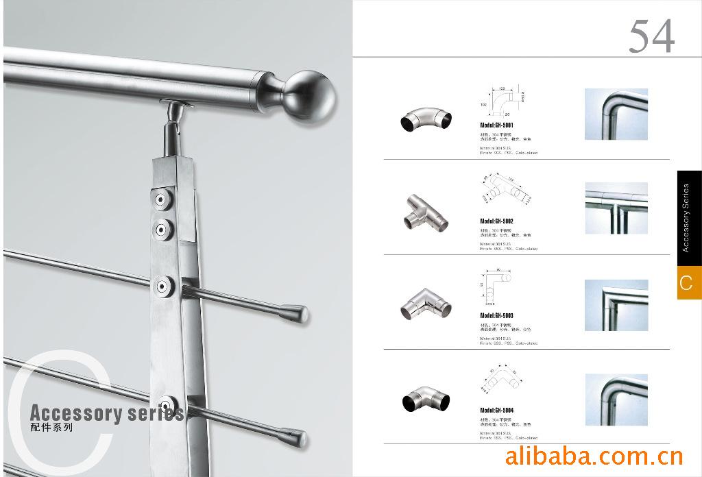 扶手盖设计独特,别具一格,分为平的和拱的两种,一般尺寸是42.4或50.8度 其它管也是可以的。已开模具的。备有少量库存。