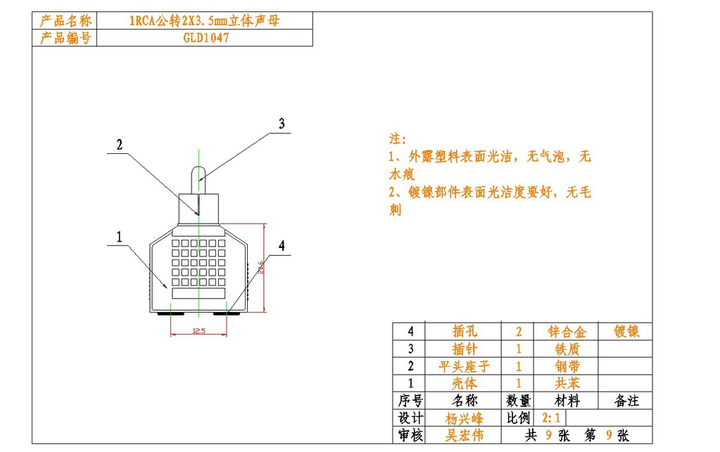 2、产品名称:GLD1047 平头公/2个3.5二芯母