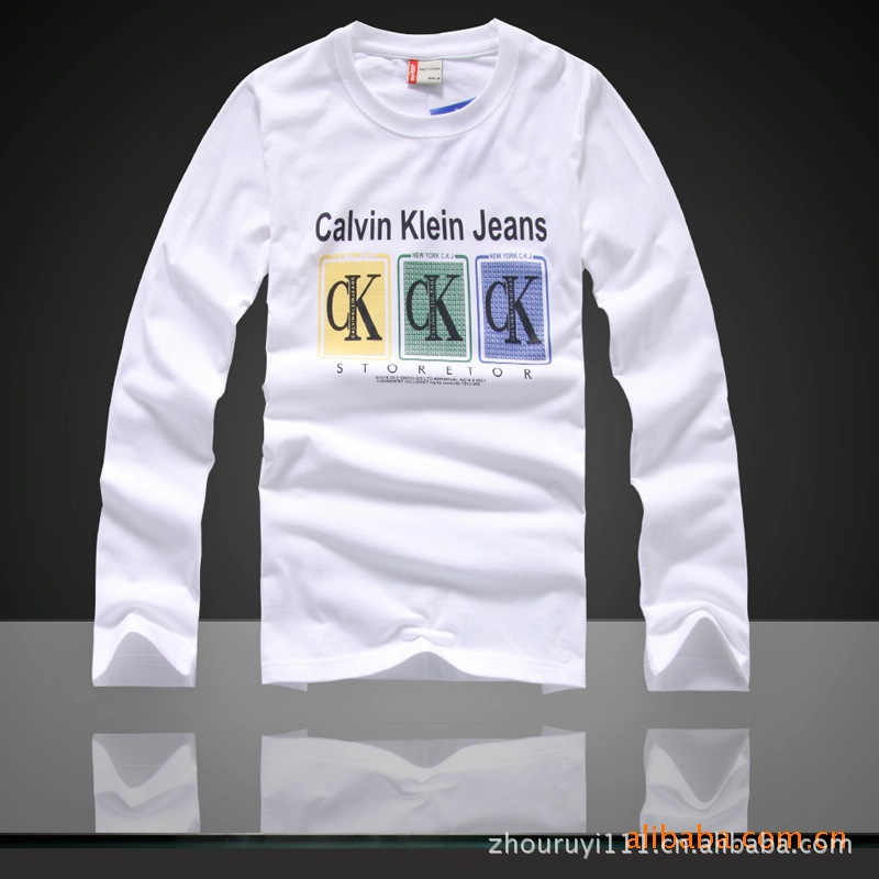 厂家直供男士全棉长袖印花反领T恤衫 来图来版定做 质量保证