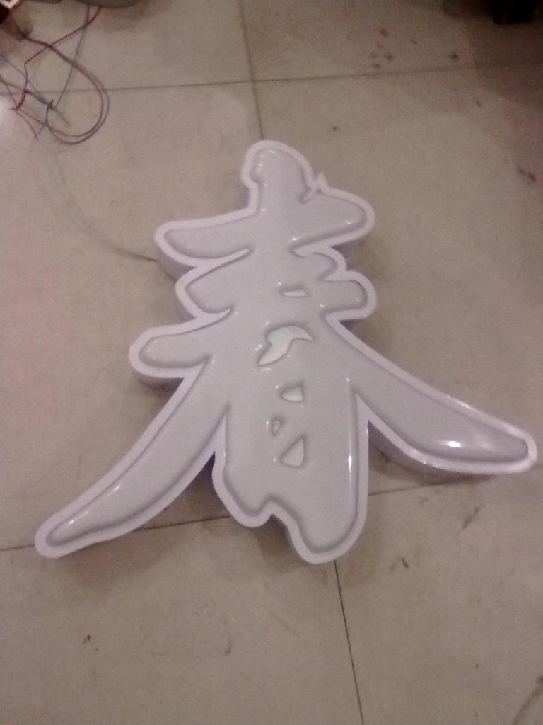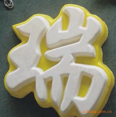 吸塑字也是一种发光字,板面通常使用亚克力板吸塑成型,再由底座等组合而成。其内部置入LED灯或是高压灯,表面工艺有平面、平鼓、球鼓、棱鼓等形式,箱体材料有铁皮烤漆、铝型材、不锈钢、钛金等,字面色彩既可以是固有色板,也可以是专色或四色丝印。