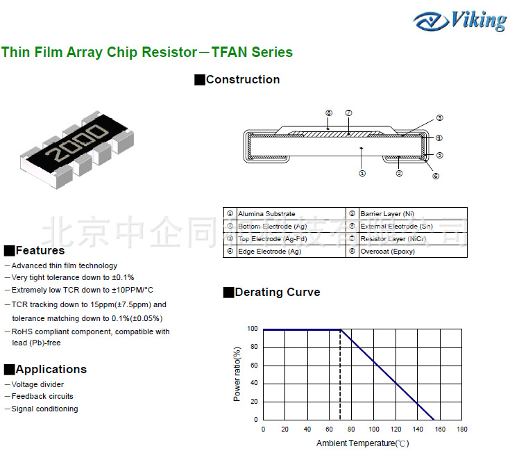 Viking薄膜贴片电阻 TFAN薄膜贴片排阻 贴片薄膜排阻 薄膜贴片阻排 15ppm薄膜贴片排阻 0.1% 薄膜阻排 0603*4薄膜贴片排阻 0.1% 0603*4 10ppm贴片阻排薄膜