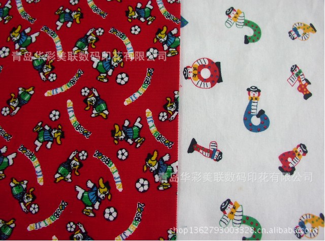 青岛灯芯绒匹布裁片热升华转移数码印花加工 灯芯绒热转印价格