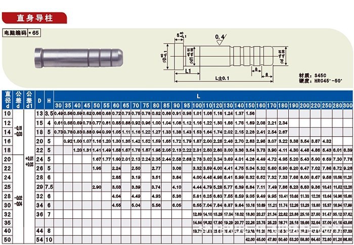 本公司专业生产65Mn顶针. 65Mn司筒. 65Mn托针. 65Mn扁顶针. SKD61顶针. SKD61司筒. SKD61托针. SKD61扁顶针.SKH51顶针. SKH51托针. SKH51扁顶针.HD(SKD11)冲头.Ad冲头.A级三冲头.ADB冲头.HDB引导冲头.HDK抽牙冲头.ADK抽牙冲头.MAD衬套.MBD衬套. 经营范围:冲模系列:铸钢模架.钢板模架.滑动导柱(SGP)独立导柱(TU).(TUB).(TUR).可拆型导柱(TGP).(TRP).导套(PGB).(RGP).辅助导套(GP).(GA).(GB).标准型保持架.等高套.浮升梢. HD(SKD11)冲头.Ad冲头.A级三冲头.ADB冲头.HDB引导冲头.HDK抽牙冲头. ADK抽牙冲头.MAD衬套.MBD衬套…… 本公司经营范围:冲模系列:铸钢模架.钢板模架.滑动导柱(SGP)独立导柱(TU).(TUB).(TUR).可拆型导柱(TGP).(TRP).导套(PGB).(RGP).辅助导套(GP).(GA).(GB).标准型保持架.等高套.浮升梢. HD(SKD11)冲头.Ad冲头.A级三冲头.ADB冲头.HDB引导冲头.HDK抽牙冲头. ADK抽牙冲头.MAD衬套.MBD衬套…… 塑模系列:直身导柱. 直身导套.有肩导套.台阶导柱.斜导柱.拉杆导柱.浇口套.日期章. 65Mn顶针. 65Mn司筒. 65Mn托针. 65Mn扁顶针. SKD61顶针. SKD61司筒. SKD61托针. SKD61扁顶针.SKH51顶针. SKH51托针. SKH51扁顶针.气缸.油缸.油马达…… 螺丝.压板系列: 塞打螺丝.T型螺丝.齿型压板.平型压板.弓型注塑机压板.冲床压板.机床压板重型压板.三角规.压规.组合压板…… 化工系列:脱模剂.防绣剂.清洗剂.顶针油.螺杆清洗剂.厌氧膏.淡金水…… 模具抛光系列: 弹簧系列: 机床附件系列:永磁起重器.精密钢量块.永磁平面吸盘.美式平口钳.台虎钳.桌虎钳. 内藏式油压虎钳.机用平口钳.模刀机.手提强力倒角机.西湖牌砂轮机.退磁器.模具倒角机.角相模光机.气动模头.电模头机.吊磨.丝锥铰手.钻夹头…… 工具系列:直柄麻花钻.加长钻.高钴钻.锥柄麻花钻.加长钻.硬质合金麻花钻.YAMAWA丝攻.SWT直柄铣刀.STA级细微粒碳化钨立铣刀.韩国养志圆铣刀.硬质合金立铣刀.直柄T型铣刀.直柄倒角刀.直柄机用铰刀.手用铰刀.锥柄机用铰刀.美国信达铰刀…… 量具系列:游标卡尺.带表卡尺.深度卡尺.数显卡尺.高度划线卡尺.刀口角尺.宽座角尺.百分表.杠杆百分表.磁性表座.半径规.塞尺,游表万能角度尺,三丰.瑞典精密量具……