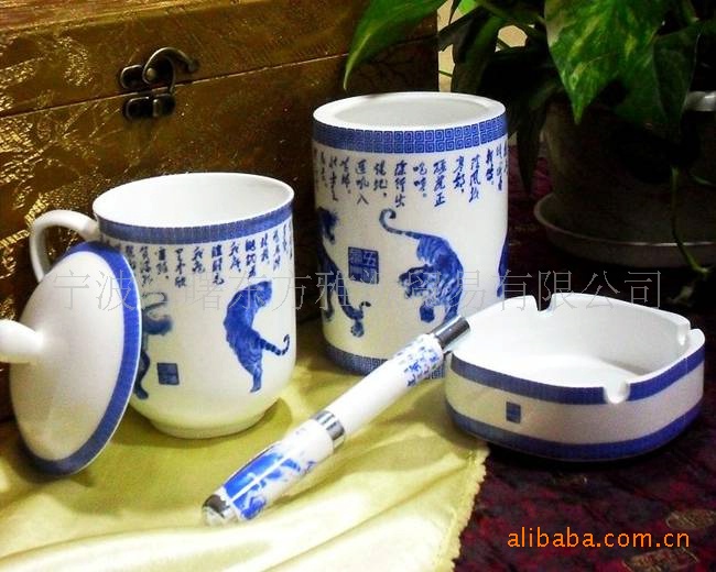 青花是运用天然钴料在白泥上进行绘画装饰,再罩以透明釉,然后在高温1300摄氏度上下一次烧成,使色料充分渗透于坯釉之中,呈现青翠欲滴的蓝色花纹,显得幽倩美观,明净素雅。青花是我国最具民族特色的瓷器装饰,是釉下彩瓷的一种,也是我国陶瓷装饰中较早发明的方法之一。清代龚轼在他的《陶歌》中这样称赞青花瓷:“白釉青花一火成,花从釉里透分明。可参造化先天妙,无极由来太极生”。青花瓷笔,纯陶瓷烧制的笔。分钢笔和签字笔,“中国风”已成为世界的一种时尚。东方雅源遍访国内知名的瓷窑,遵循古法,经过素烧、上釉、釉烧等10道工序,三进三出瓷窑以1200度的高温为您烧制出世界首款陶瓷系列礼品----笔身晶莹剔透,手感润滑。此款笔生产的难度系数极高,因为笔身的陶瓷厚度为1.3毫米,笔身和陶瓷笔杆的误差为0.05毫米,烧制温度为高温1200度,陶瓷笔管从做模,到贴花出成品时间为10道工序,出成品后经过严格筛选,一般要淘汰一半多不合格的,选出来的可谓百里挑一。由于市场上无此类产品,青花瓷笔的问世,将是礼品市场的大热门。