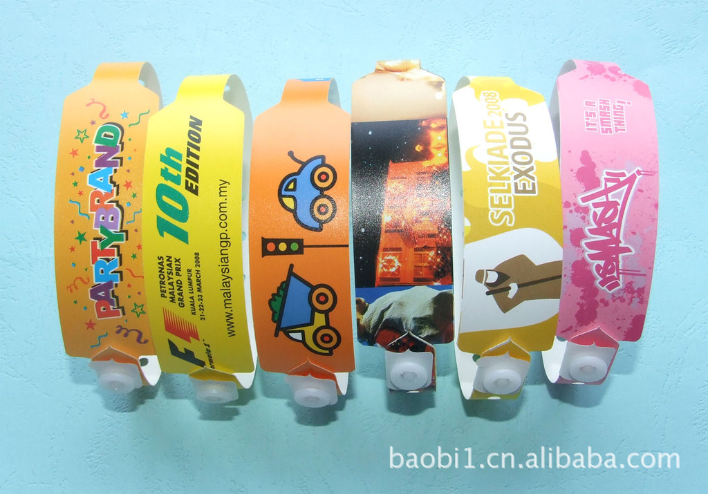 宝比通用聚酯类识别腕带:适用于各个场合的识别用途,如洒吧、KTV、游乐场、演唱会、交友活动现场等。安全可靠,使用方便,使用方便,有多种颜色可供选择。 所有宝比产品均不含 乳胶物、邻苯二甲酸盐、和富马酸二甲酯,安全无毒,符合严苛的出品安全标准。 咨询或订购请电:400 880 6887传真:020-86780697公司网址:www.bb-wristbands.com.cn