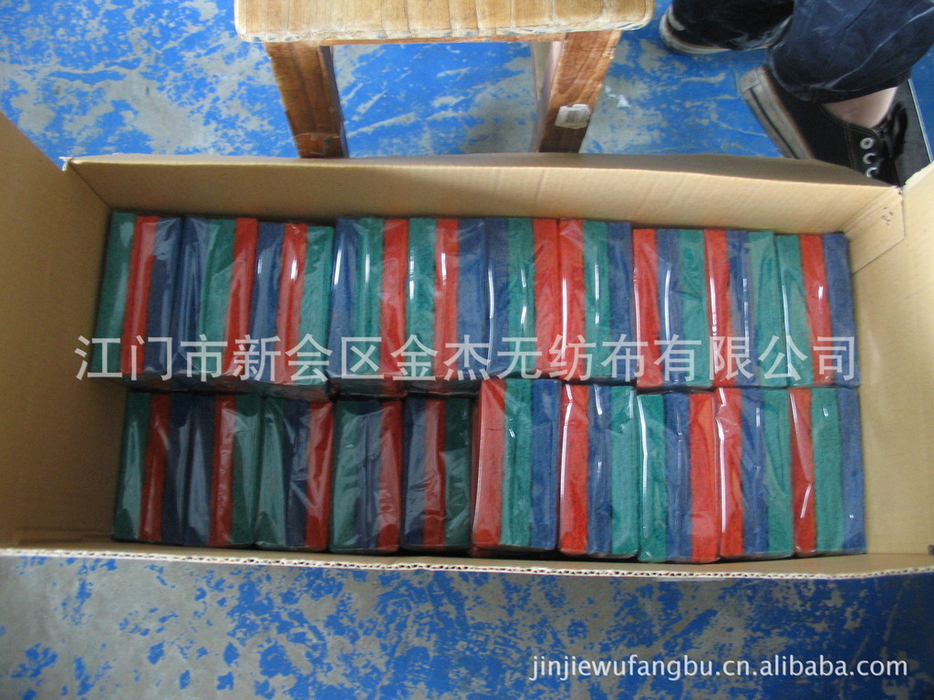 广东省江门市新会区金杰无纺布有限公司是一家具有十多年历史的国内最先进的百洁布生产企业之一,集研发、生产、营销为一体的专业百洁布清洁用品系列的企业。主要生产经营各种各样的含砂百洁布、尼龙百洁布、木桨棉、沐浴棉、海绵百洁布、清洁刷布、过滤棉、喷胶棉、针刺棉、锅刷、杯刷、打磨垫、金银葱布各种家庭清洁用品及礼品等。
