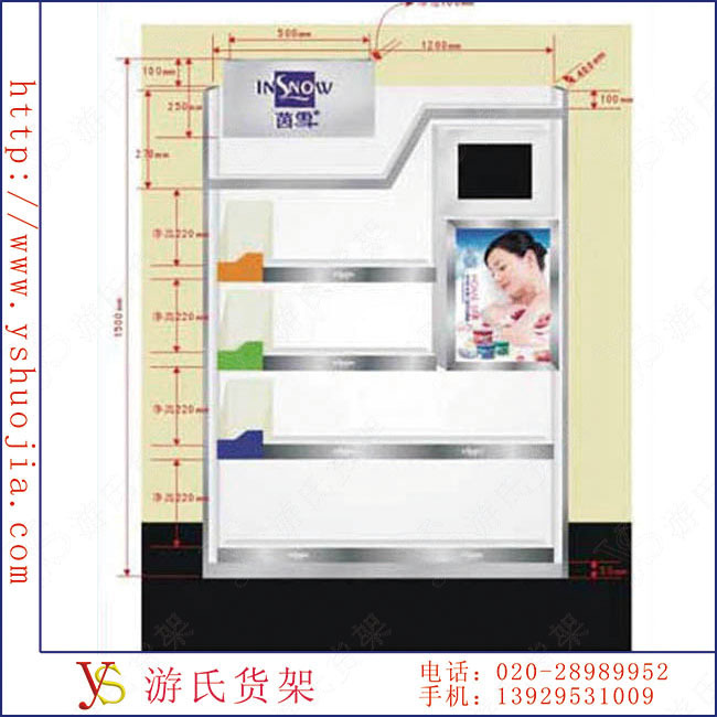 ★商场展柜展架系列:服装展示架、化妆品展示架、鞋帽展示架、箱包展示架、童装展示架、珠宝展示架、手机数码展示柜、食品展示柜、家电展示柜
