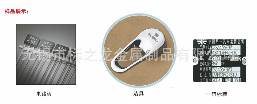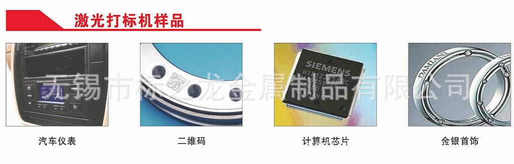 诚接各种激光加工业务!为满足广大客户的需求,无锡标龙激光对外承接各种激光加工业务加工部有各种适合金属和非金属产品表面打标设备,满足不同客户的激光,气动刻字加工要求。加工由多年激光工艺经验的工艺师专门负责,加工产品完美,效率高,及时准确的按客户的要求进行加工和设计。适合加工材料金属类材料有:不锈钢、铝、铜、合金等各种金属制品,喷漆、氧化金属制品,铝塑型材,电镀、阳极处理材料等;非金属类材料有:竹木制品,塑胶、橡胶、树脂,石材、玻璃、水晶、陶瓷,皮革、布料,中纤板、亚克力板材、纸张等适合加工的行业(1)电子行业:机箱面板,键盘,电源模块,电子器件,电路板等;(2)服装行业:装饰品、商标、纽扣、牛仔、皮鞋皮具用品等的镂空、雕花、裁片;(3)工艺品:珠宝首饰、竹木制品、水晶、金属工艺品、眼镜钟表;(4)包装行业:食品、医药包装袋、包装盒、酒盒等打标喷码;(5)五金机械:汽车配件,工、量具,卫浴洁具,医疗、健身器械,仪器仪表;(6)其它行业:家具装饰,饰扣标牌,塑胶制品。