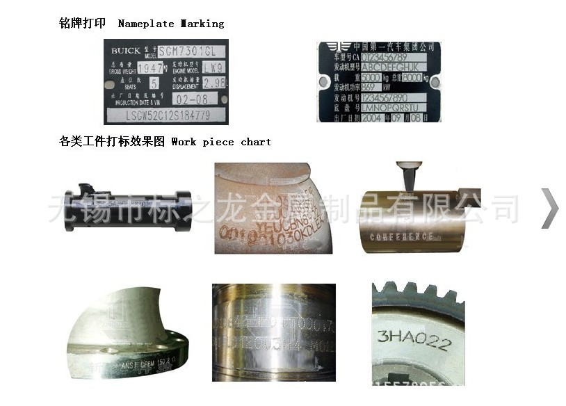 应用范围:适用于各种金属或非金属标牌,铭牌,零部件的平面弧面打标,以及圆柱型工件的轴向打标等。